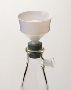 Polyethylene. Praktisch unzerbrechlich. Der einfachste Weg benutzte Glasgefäße in wenigen Sekunden und in einem Arbeitsgang zu Spülen (z.B. Aceton/Ethanol) und zu Trocknen. Benötigt wird lediglich eine Saugflasche (mit durchbohrtem Gummistopfen und Vakuumschlauch) und ein leichtes Vakuum.